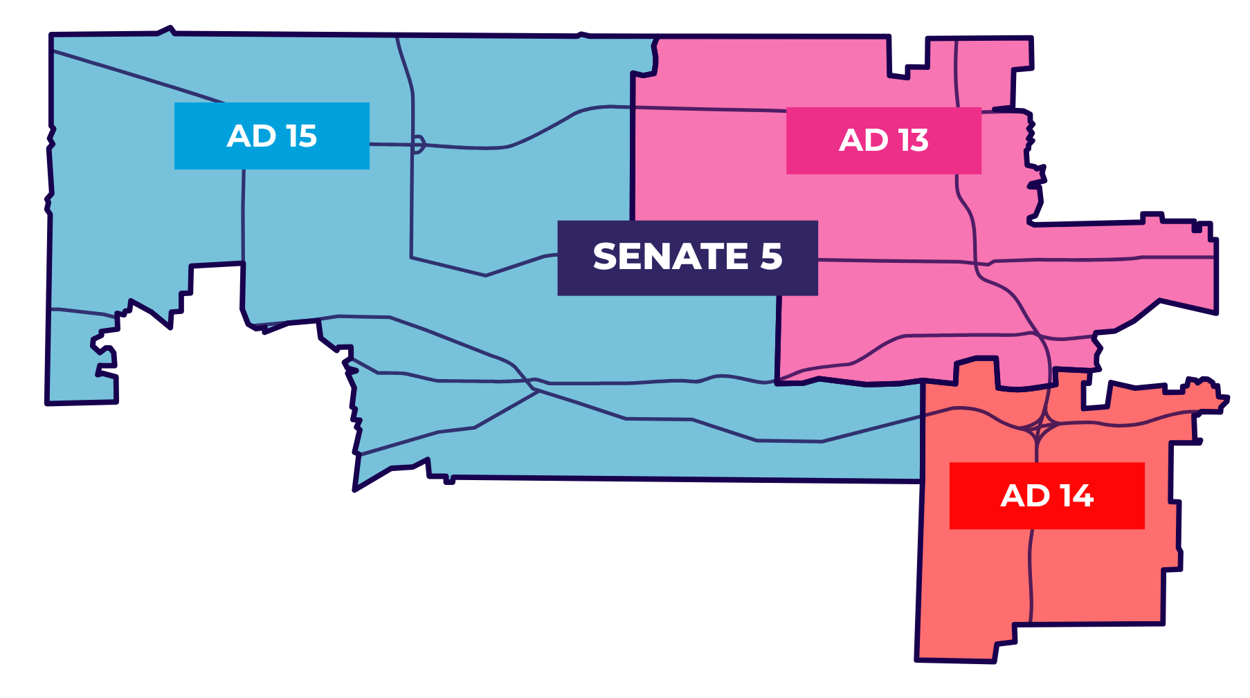 New seat, new district! Robyn is running for State Senate District 5 in 2026, which includes: